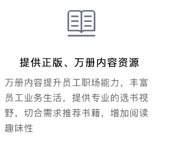 可通过企业高管、企业员工、行业专家及专业编辑等多维度为企业用户精推各种优质好书,通过分析大数据,根据员工喜好内容进行推荐和引导,提高员工阅读学习的兴趣。读书活动·心得体会——激发学习热情,提升荣誉感,展示企业文化